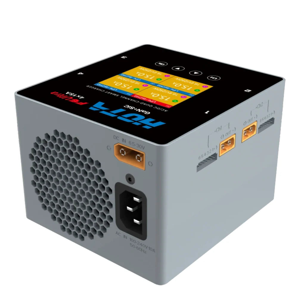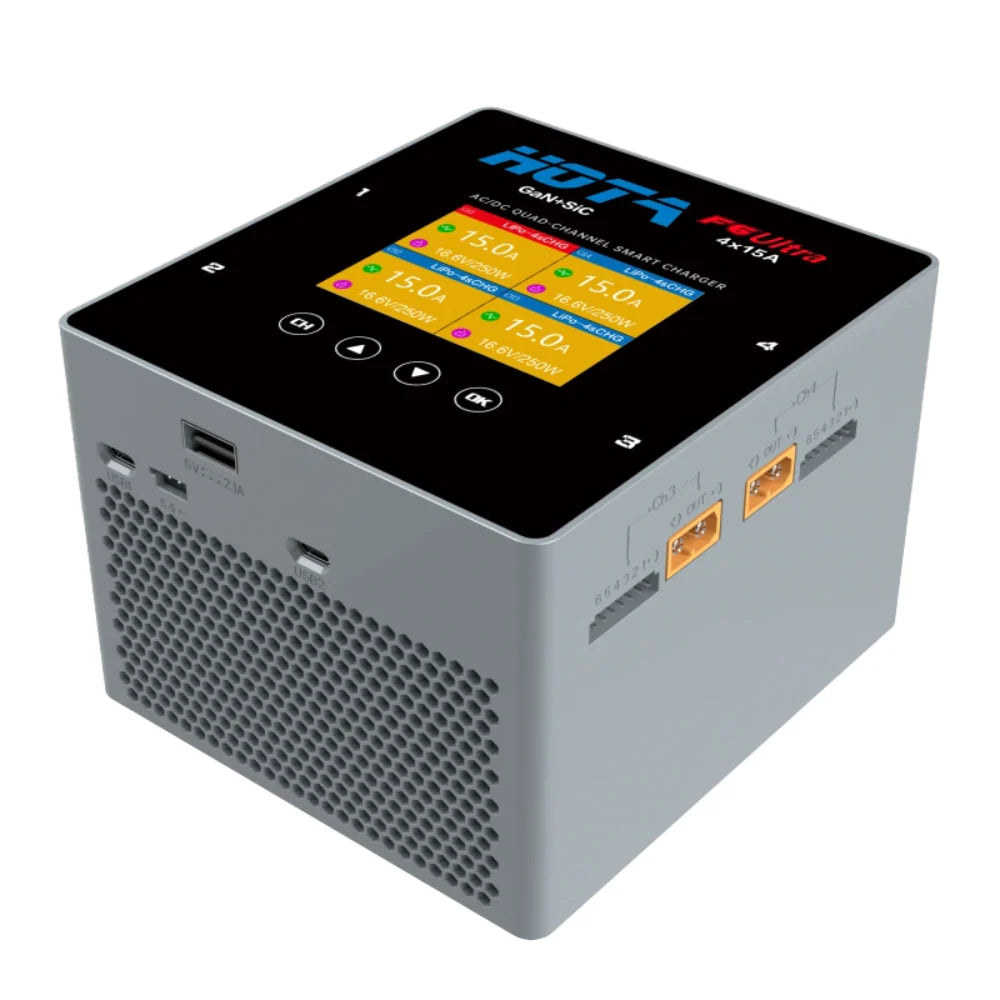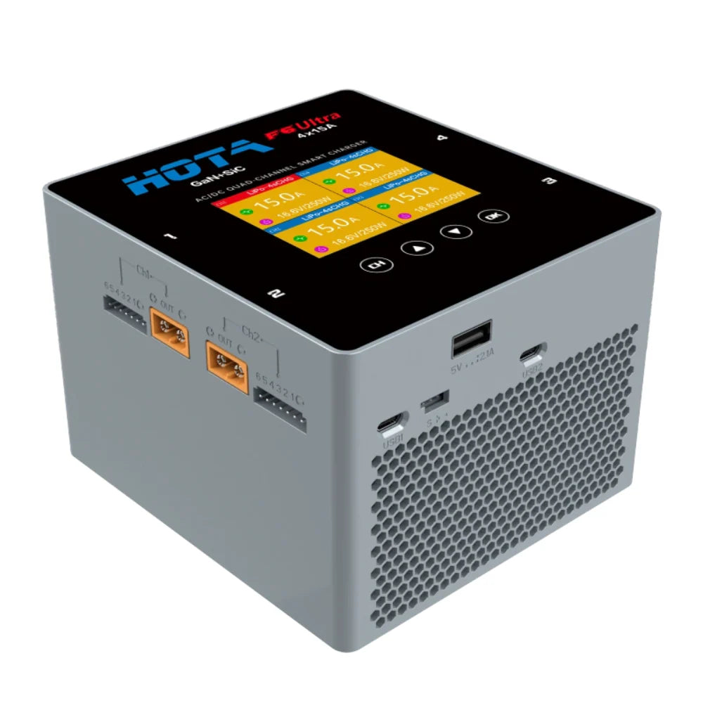 I can run this at home off the internal AC power supply (when I must charge all the packs in a hurry) but you can also use it paired with the Stay High Field Charging Pack that's light weight and fits in my bag. The F6 Ultra uses an XT90 on the DC Input side, so if you need to grab an XT60 to XT90 adapter when you order.