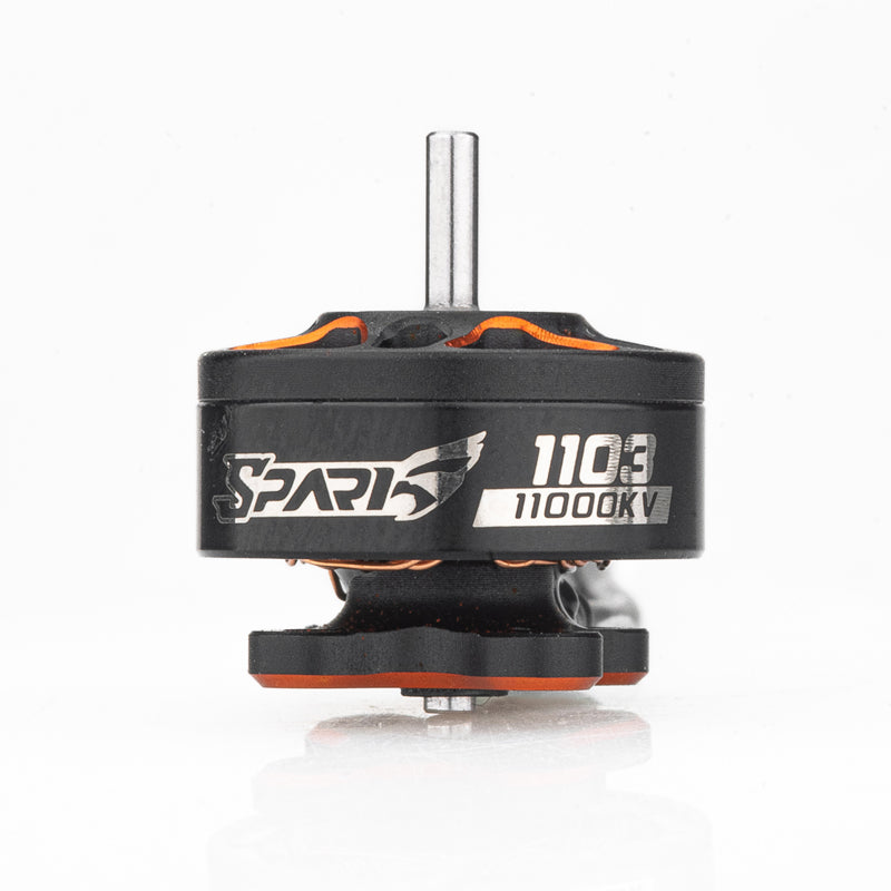 The VCI Spark Motor 1103 (7500/11000KV, 1.5mm shaft, 2 pack) offers fast and responsive performance. These small, sturdy motors improve speed and agility in mini-drones.